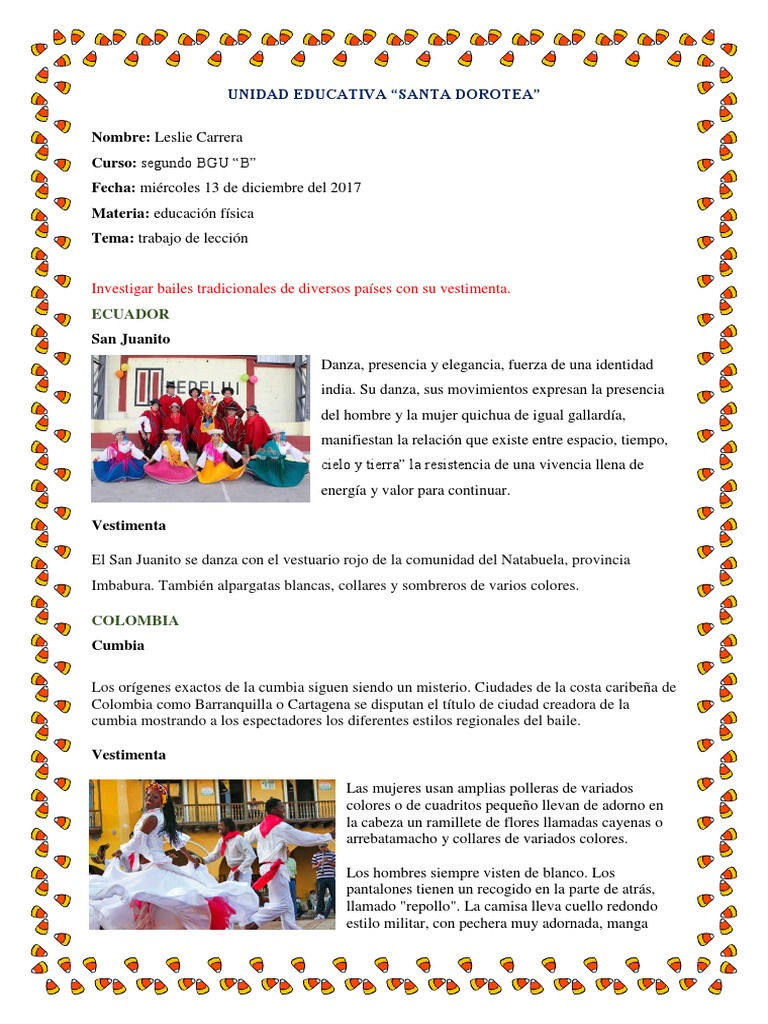 Investigar bailes tradicionales de diversos países con su vestimenta.