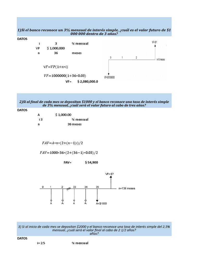3) Si al inicio de cada mes se depositan $2000 y el banco reconoce una tasa de interés simple del 2,5%