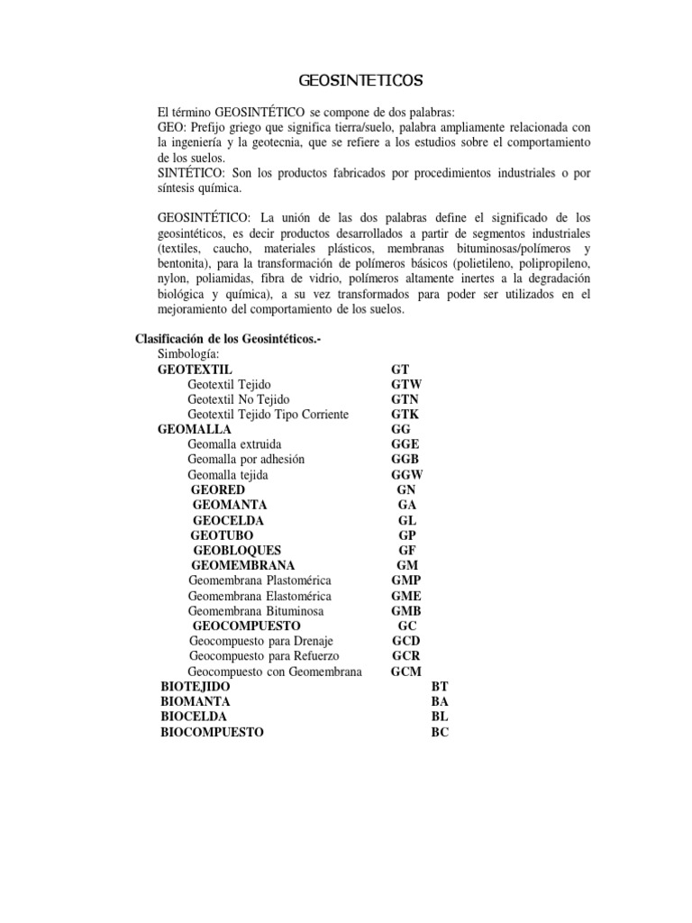 El término GEOSINTÉTICO se compone de dos palabras: