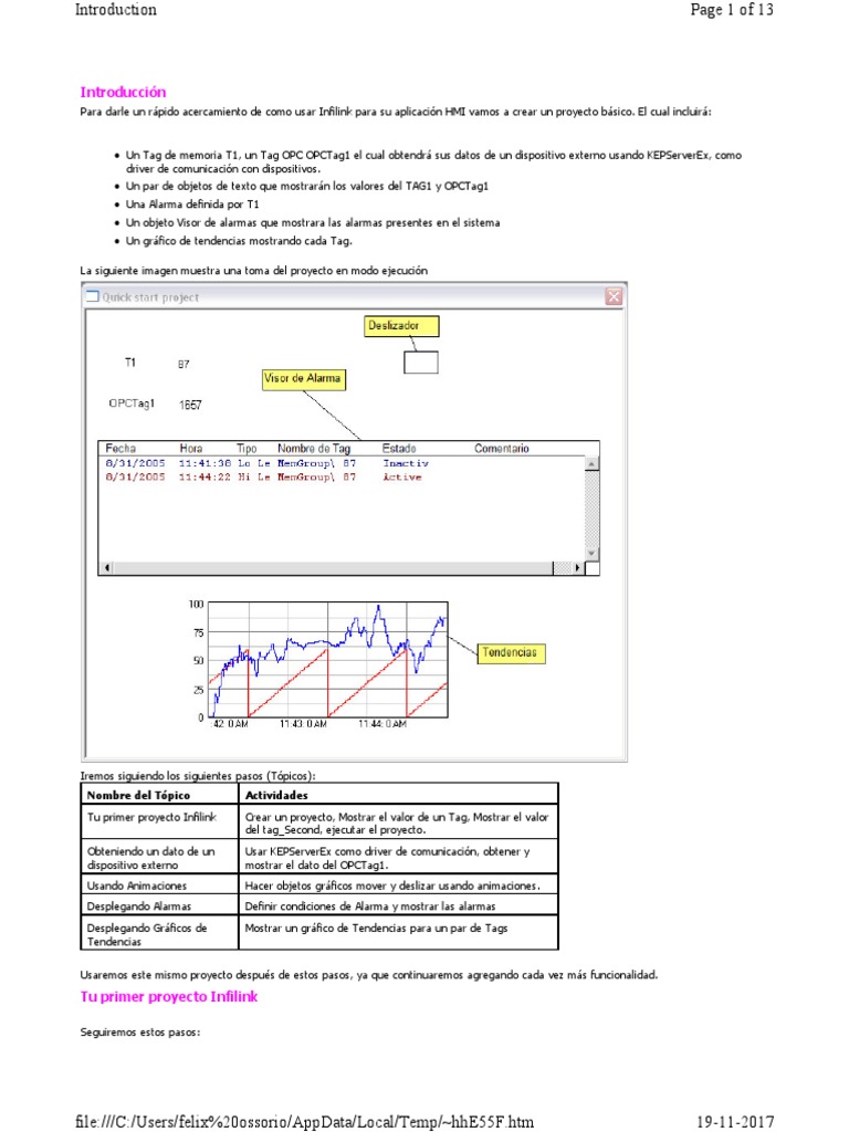 Tu primer proyecto Infilink Crear un proyecto, Mostrar el valor de un Tag, Mostrar el valor