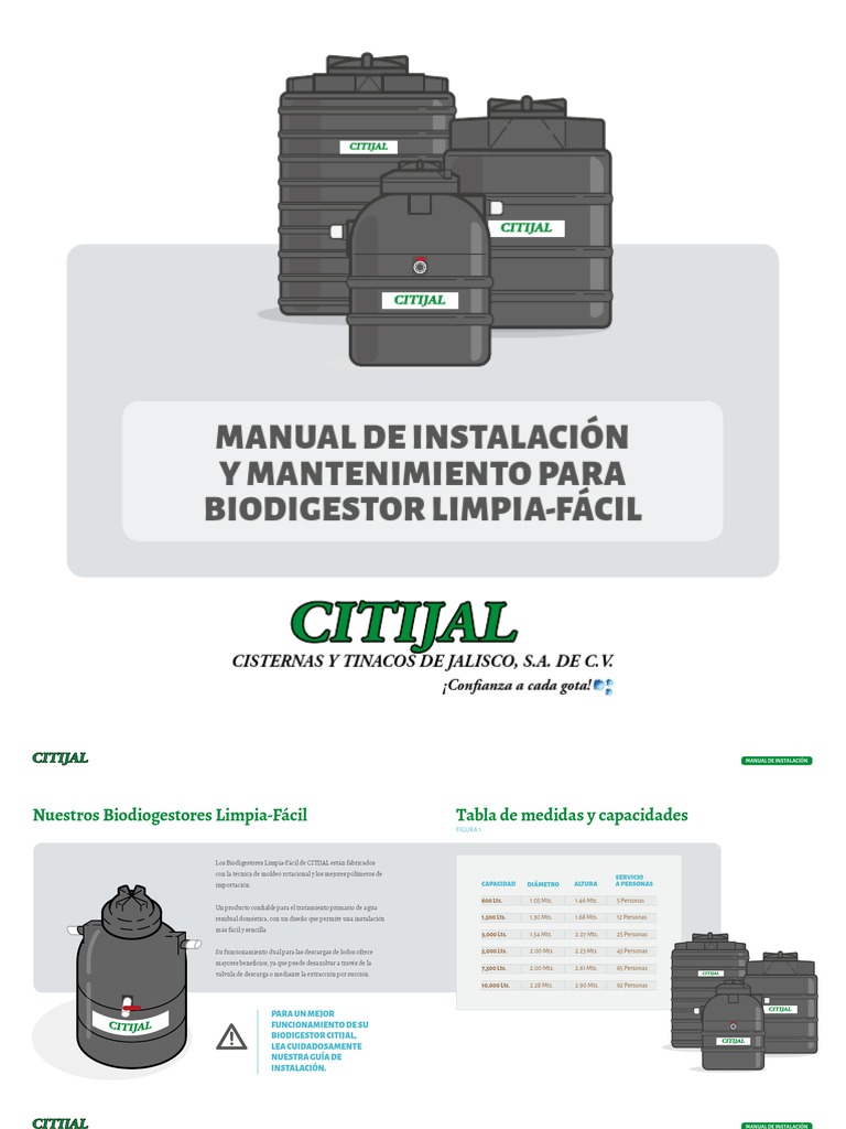 para la instalación de su Biodigestor CITIJAL,