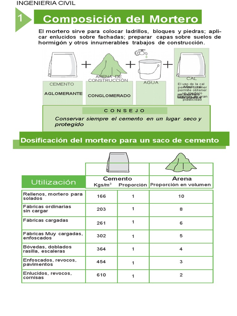 El mortero sirve para colocar ladrillos, bloques y piedras; apli-