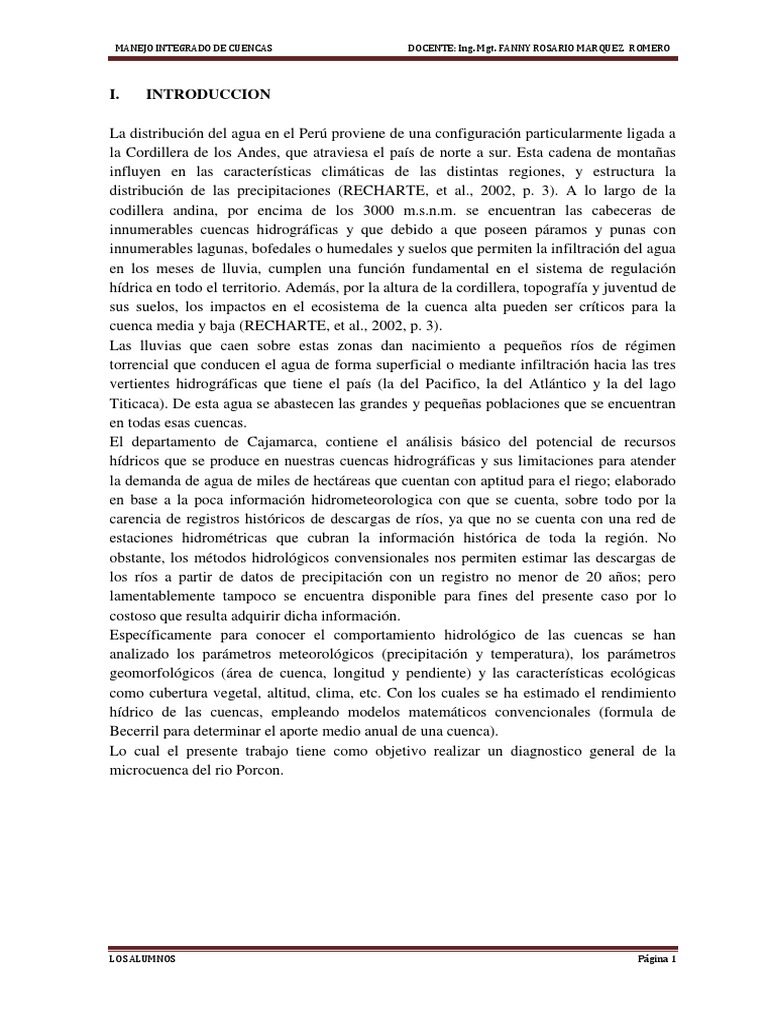limitaciones: Al ser la sub cuenca Porcón una cuenca de menor tamaño, sus problemas
