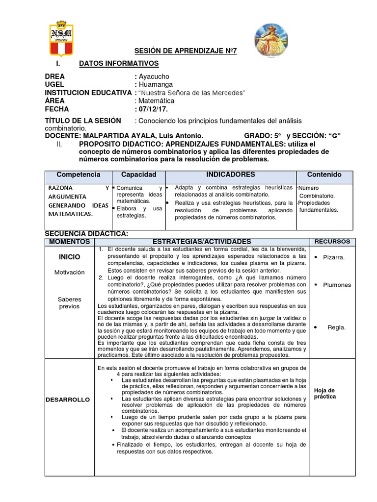 SESIÓN DE APRENDIZAJE Nº7