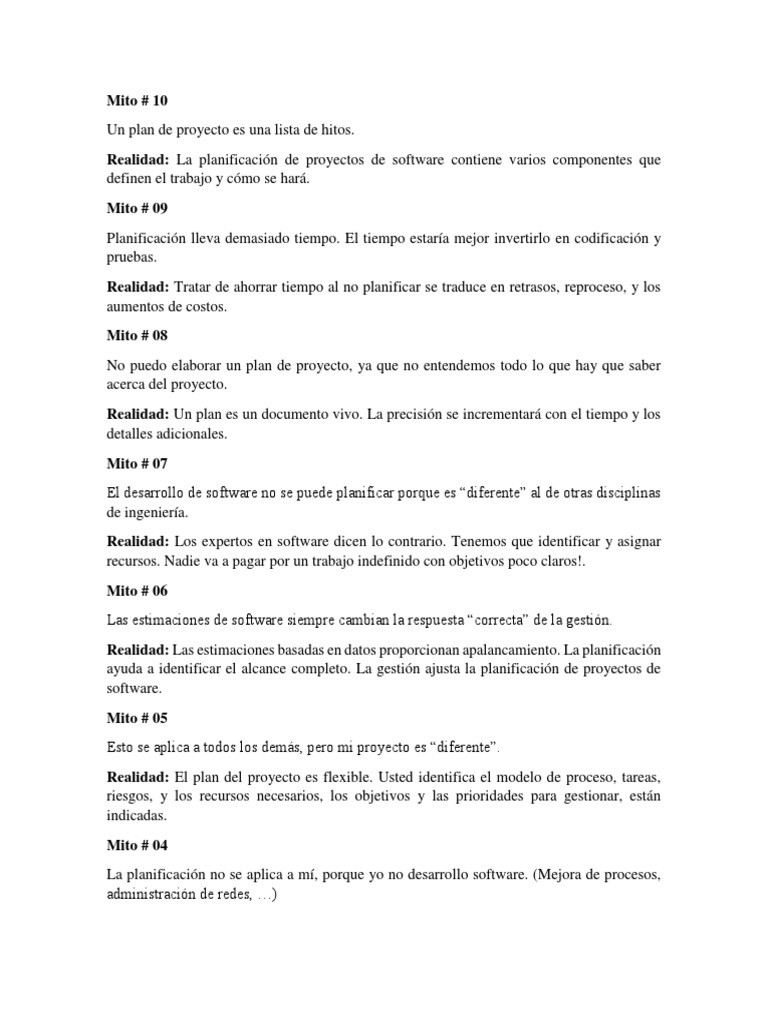 Realidad: La planificación de proyectos de software contiene varios componentes que