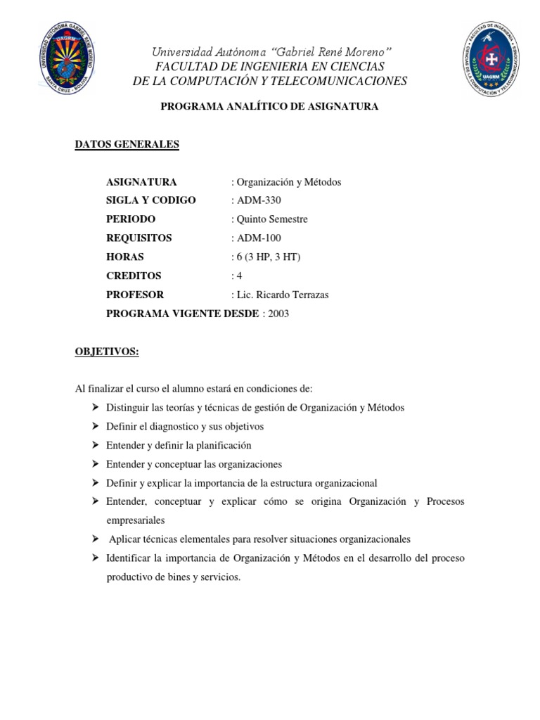 ASIGNATURA : Organización y Métodos