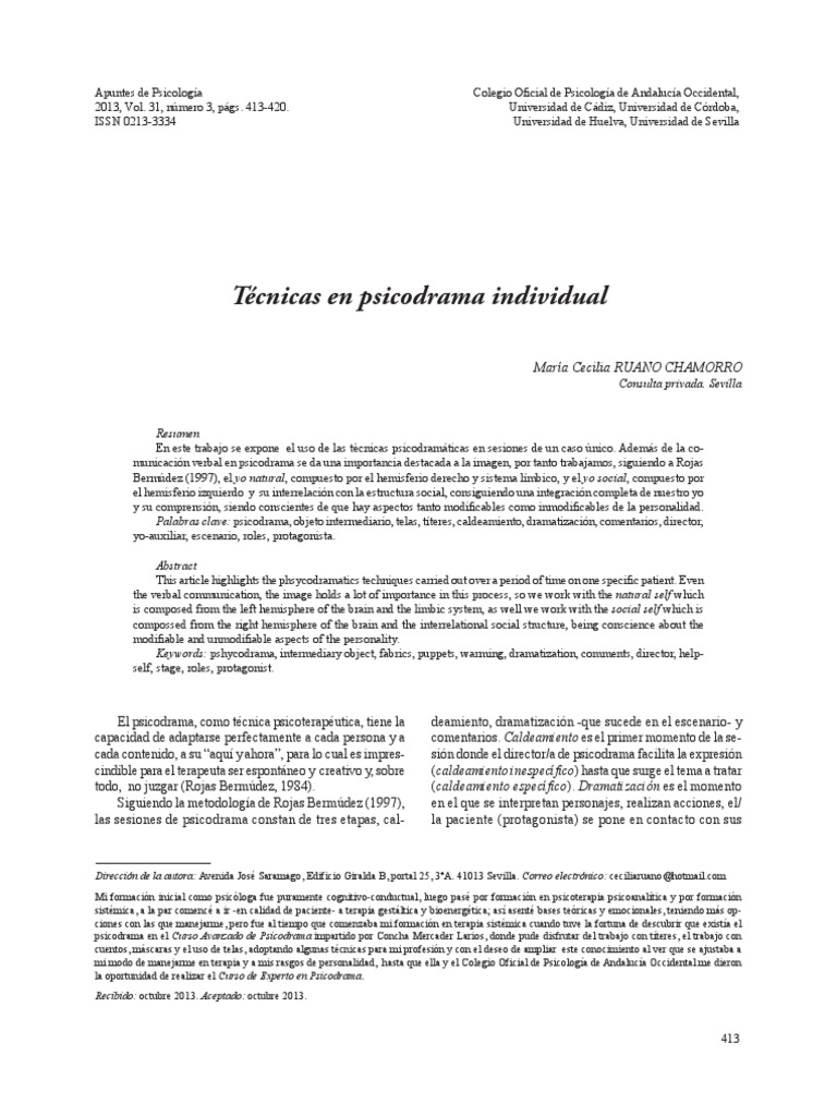 M. C. Ruano Chamorro Técnicas en psicodrama individual
