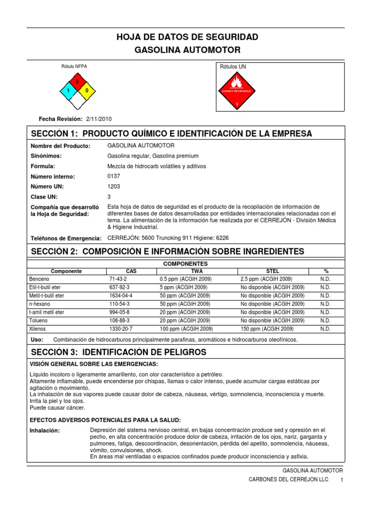 Nombre del Producto: GASOLINA AUTOMOTOR
