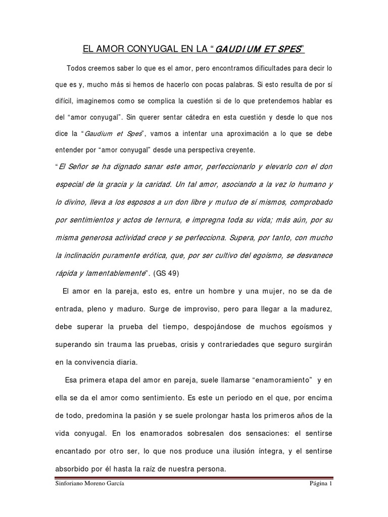 del “amor conyugal”. Sin querer sentar cátedra en esta cuestión y desde lo que nos