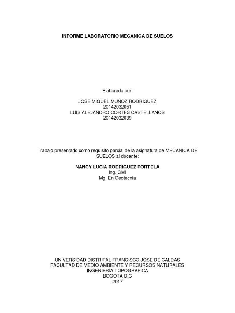 INFORME LABORATORIO MECANICA DE SUELOS