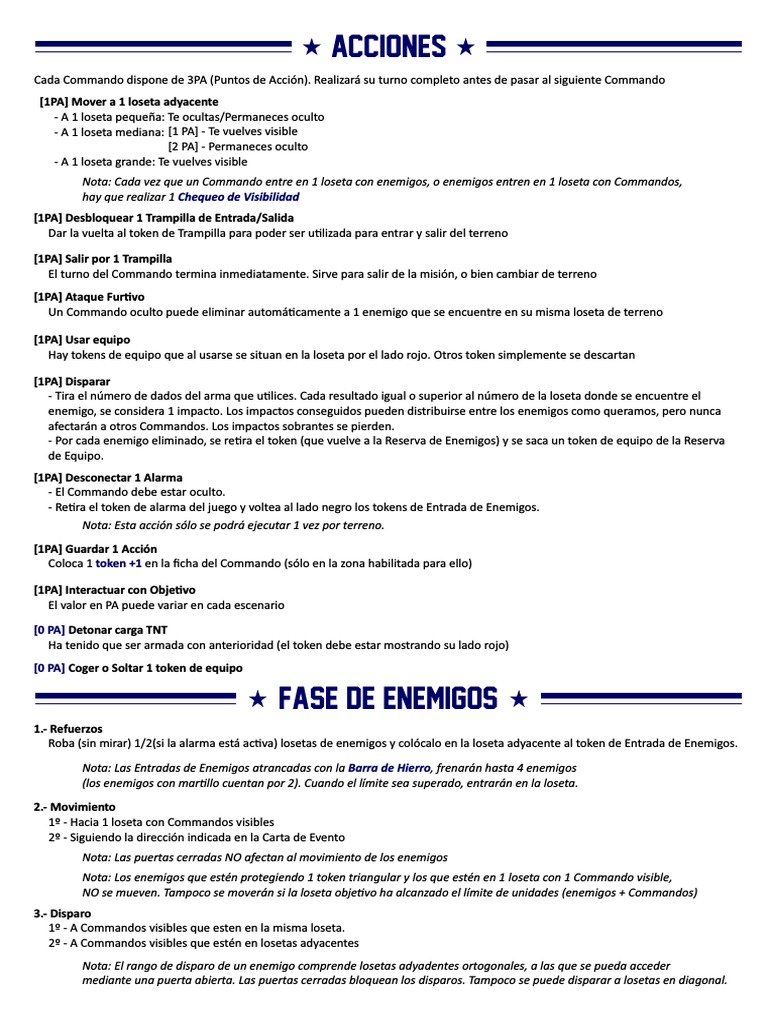 Nota: Cada vez que un Commando entre en 1 loseta con enemigos, o enemigos entren en 1 loseta con Commandos,