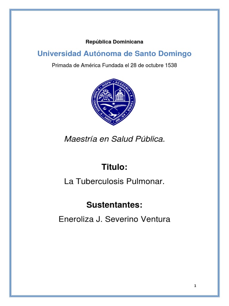 especificar las causas, consecuencias y prevención de la tuberculosis. Estudia