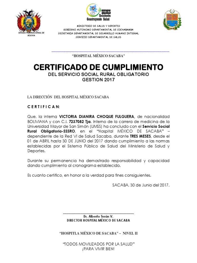 LO QUE SUSCRIBE DIRECTOR DEL HOSPITAL MÉXICO DE SACABA