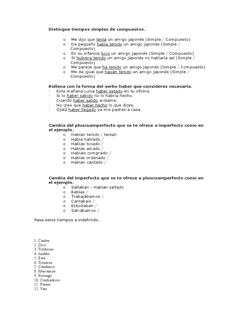 Identifica los siguientes tiempos verbales como en el ejemplo: