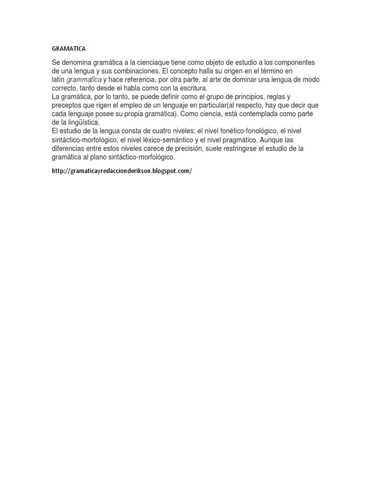 Se denomina gramática a la cienciaque tiene como objeto de estudio a los componentes