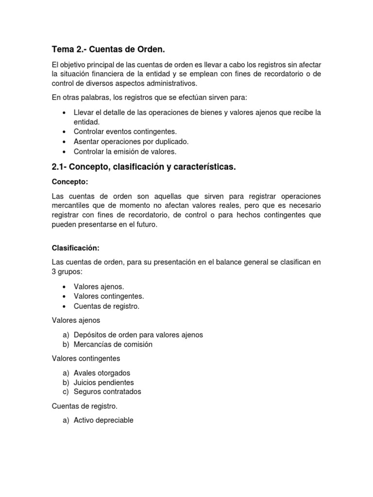 Cuentas de orden: Son aquellas cuentas que controlan ciertas operaciones