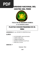 secciones de la Planta Concentradora son las siguientes a) Chancado b) Molienda c) Flotación d) Espesamiento y
