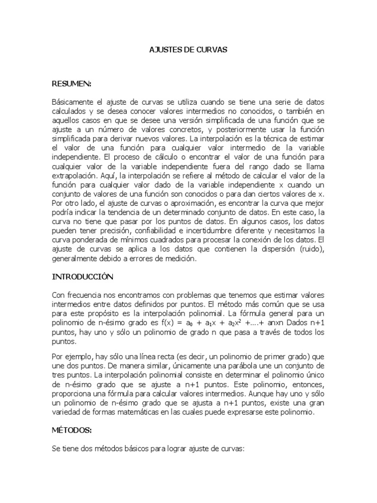 Básicamente el ajuste de curvas se utiliza cuando se tiene una serie de datos