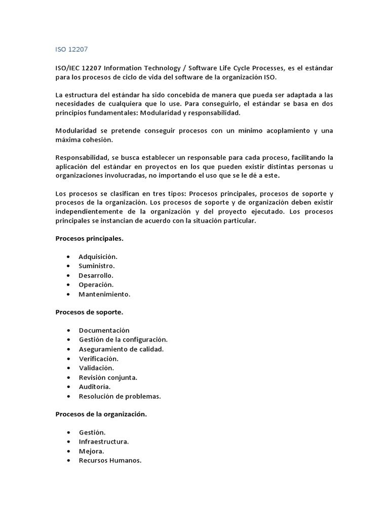 ISO/IEC 12207 Information Technology / Software Life Cycle Processes, es el estándar