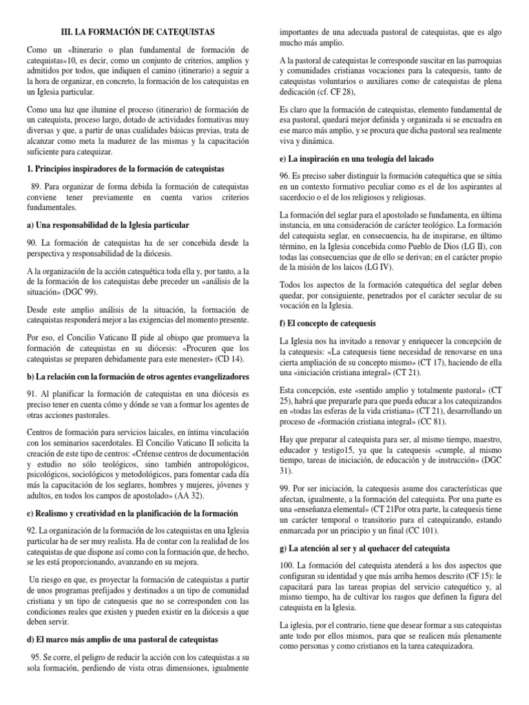 126. Esta última dimensión de la formación concierne al ser del síntesis de fe, el catequista tratará de conocer de un modo básico y