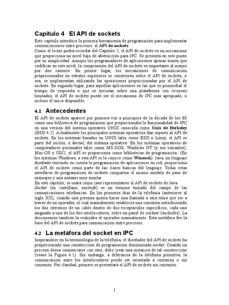 En este capítulo, se usará como caso representativo el API de sockets de Java.