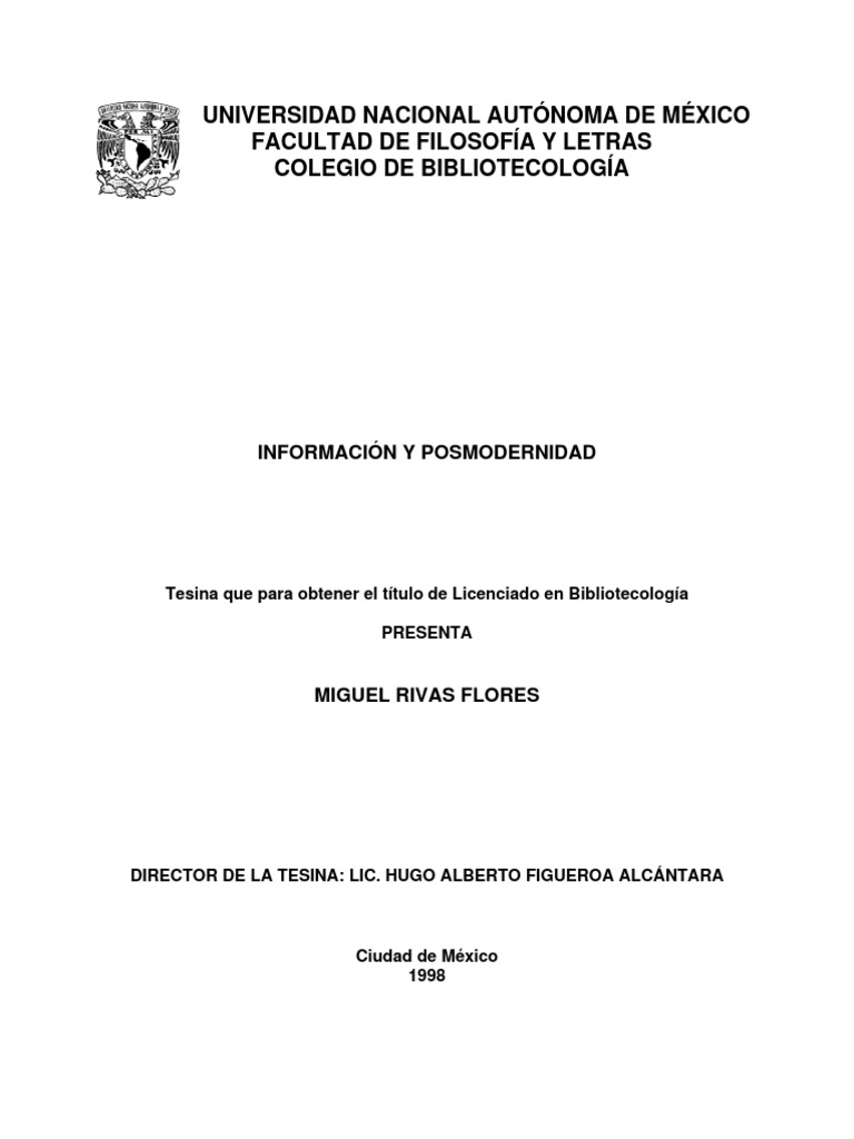 Tesina que para obtener el título de Licenciado en Bibliotecología