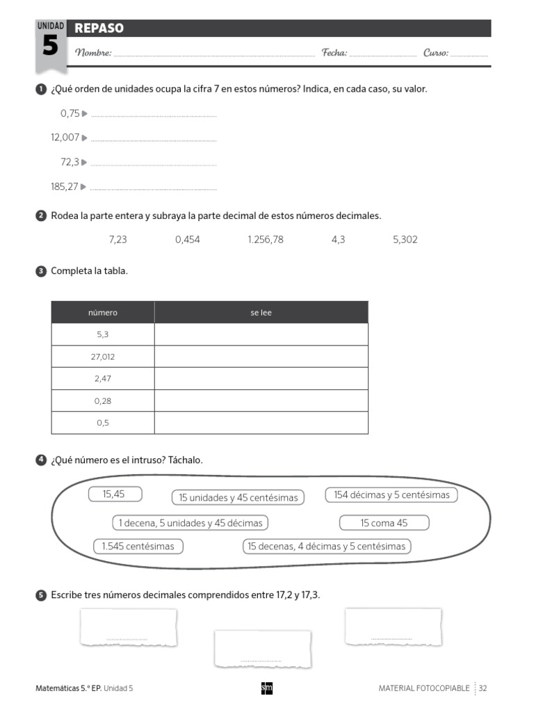 Matemáticas 5.º EP. Unidad 5 MATERIAL FOTOCOPIABLE 32
