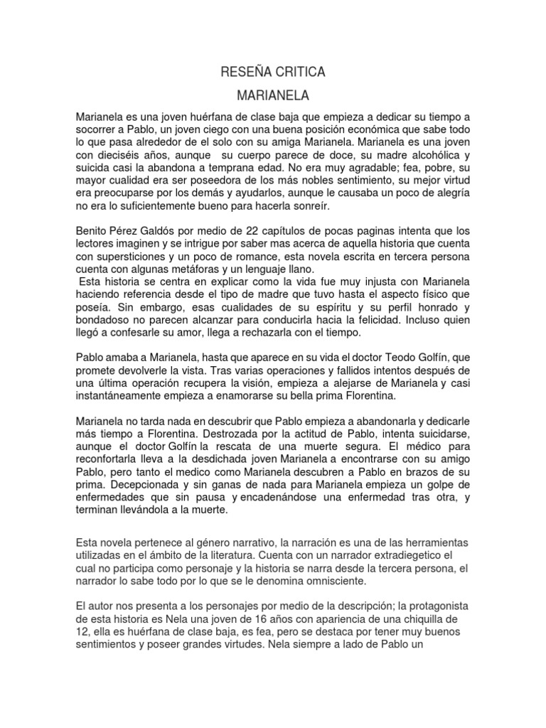 lo que pasa alrededor de el solo con su amiga Marianela. Marianela es una joven