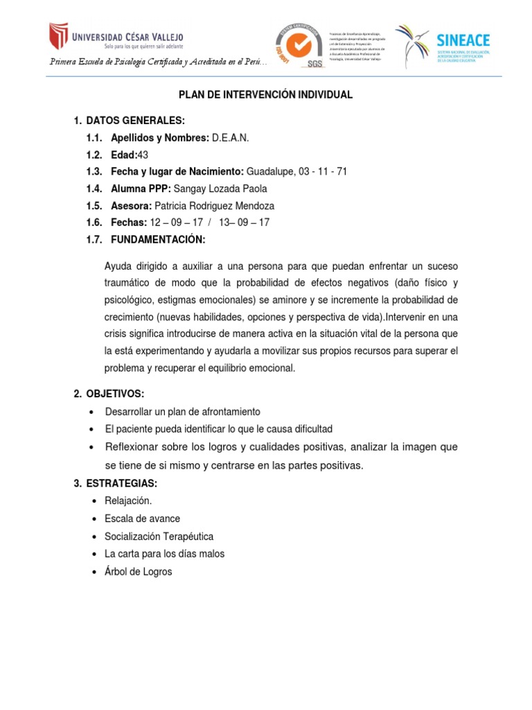 PLAN DE INTERVENCIÓN INDIVIDUAL