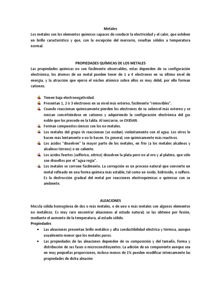 PROPIEDADES QUÍMICAS DE LOS METALES