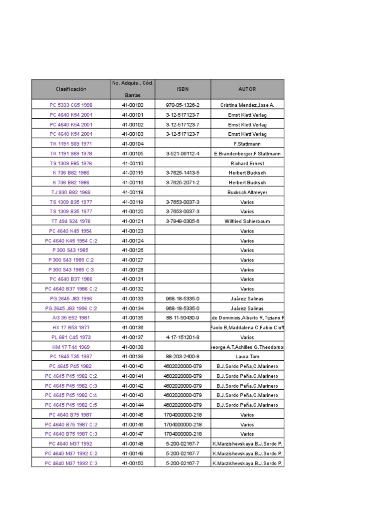 Clasificación ISBN AUTOR