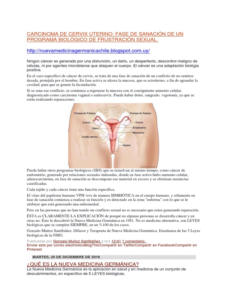 En el caso específico de cáncer de cervix, se trata de una fase de sanación de un conflcito de no sentirse