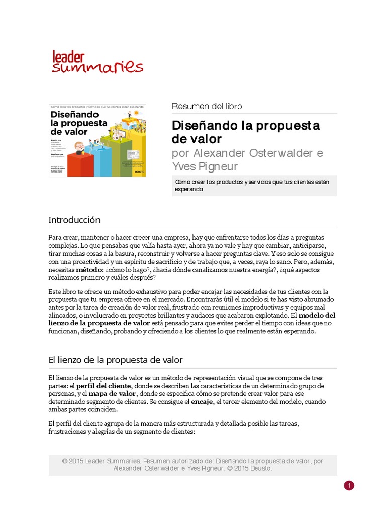 © 2015 Leader Summaries. Resumen autorizado de: Diseñando la propuesta de valor, por