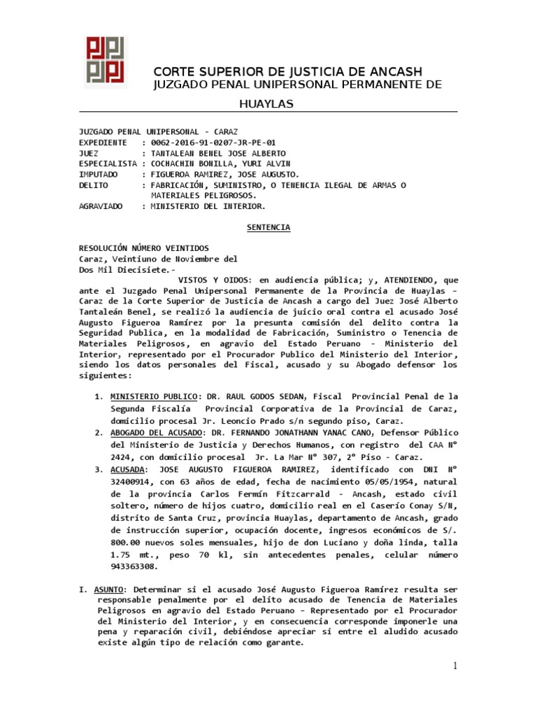 ante el Juzgado Penal Unipersonal Permanente de la Provincia de Huaylas –