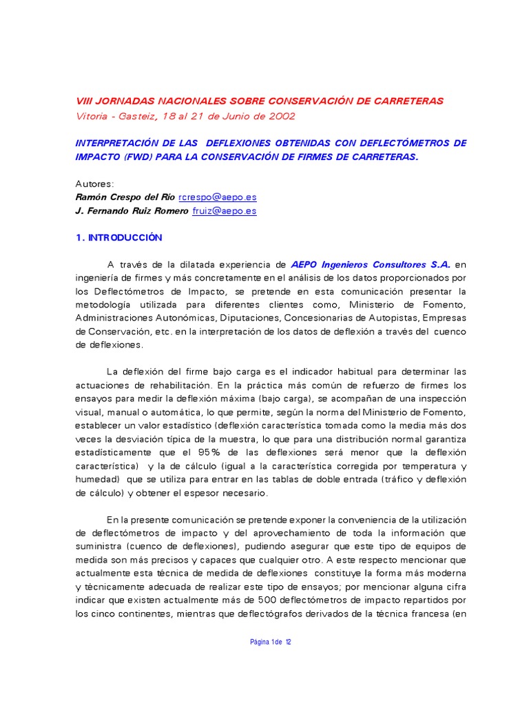pertinente. A efectos de ingeniería de firmes solo los deflectómetros de impacto