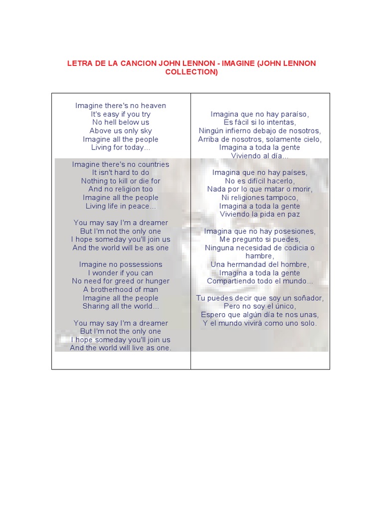 LETRA DE LA CANCION JOHN LENNON - IMAGINE (JOHN LENNON