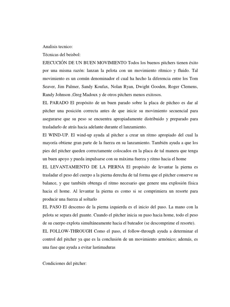 pitcher una posición correcta antes de que inicie su movimiento secuencial para