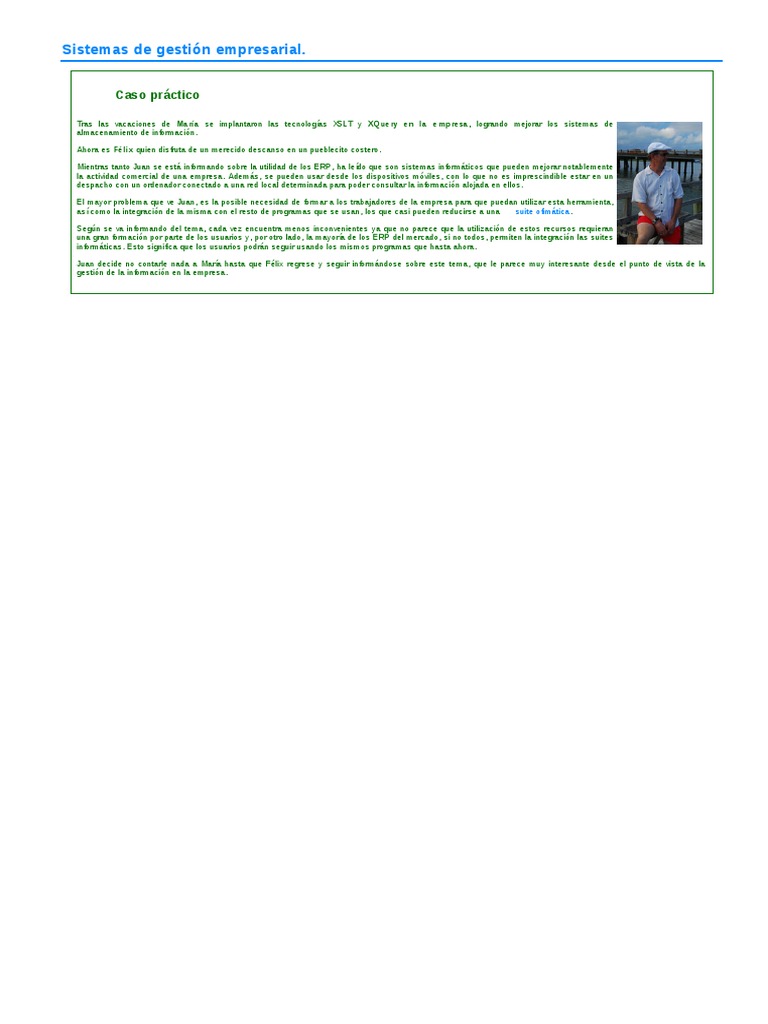 Mientras tanto Juan se está informando sobre la utilidad de los ERP, ha leído que son sistemas informáticos que pueden mejorar notablemente