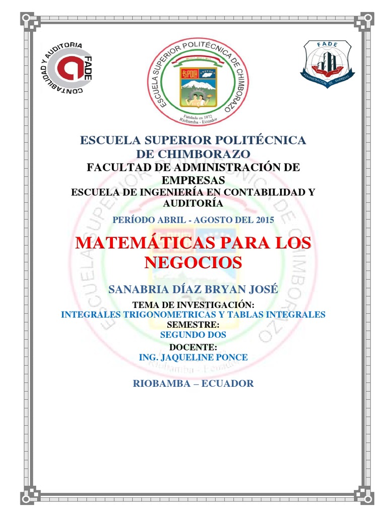 FÓRMULAS DE INTEGRACIÓN TRIGONOMÉTRICAS ..................................................................... 7