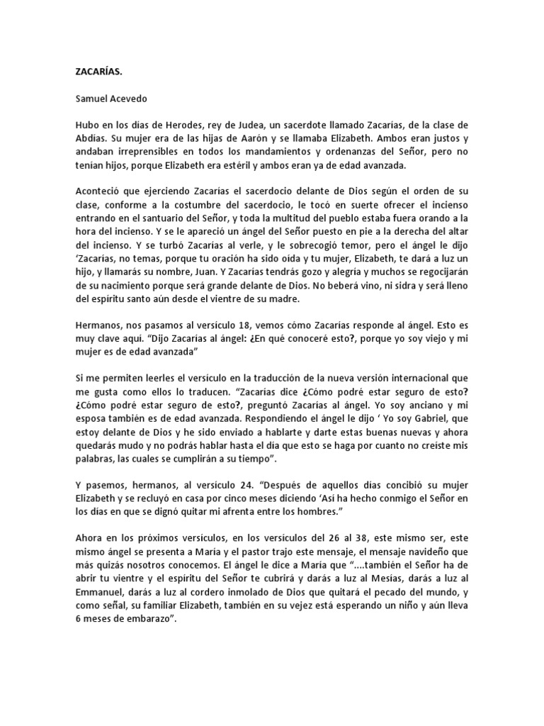estaba ¿en qué condición estaba el pobre Zacarías? Mudo, no le podía decir nada a ella.