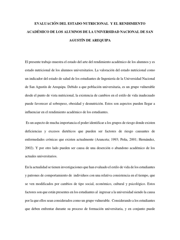 estado nutricional de los alumnos universitarios. La valoración del estado nutricional como