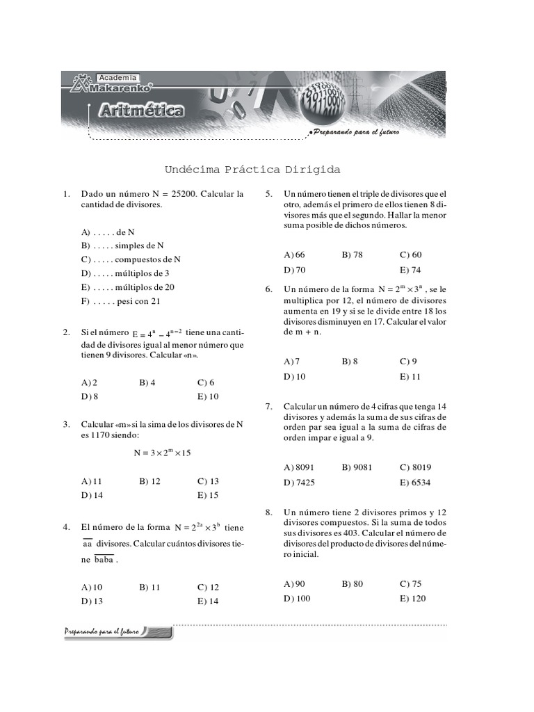 9. Si un número N tiene como únicos divisores 12. Determine el menor número impar múltiplo