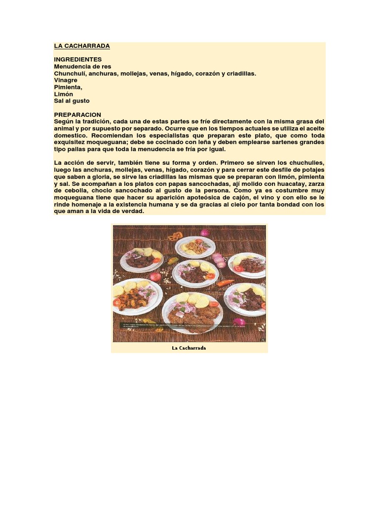 exquisitez moqueguana; debe se cocinado con leña y deben emplearse sartenes grandes