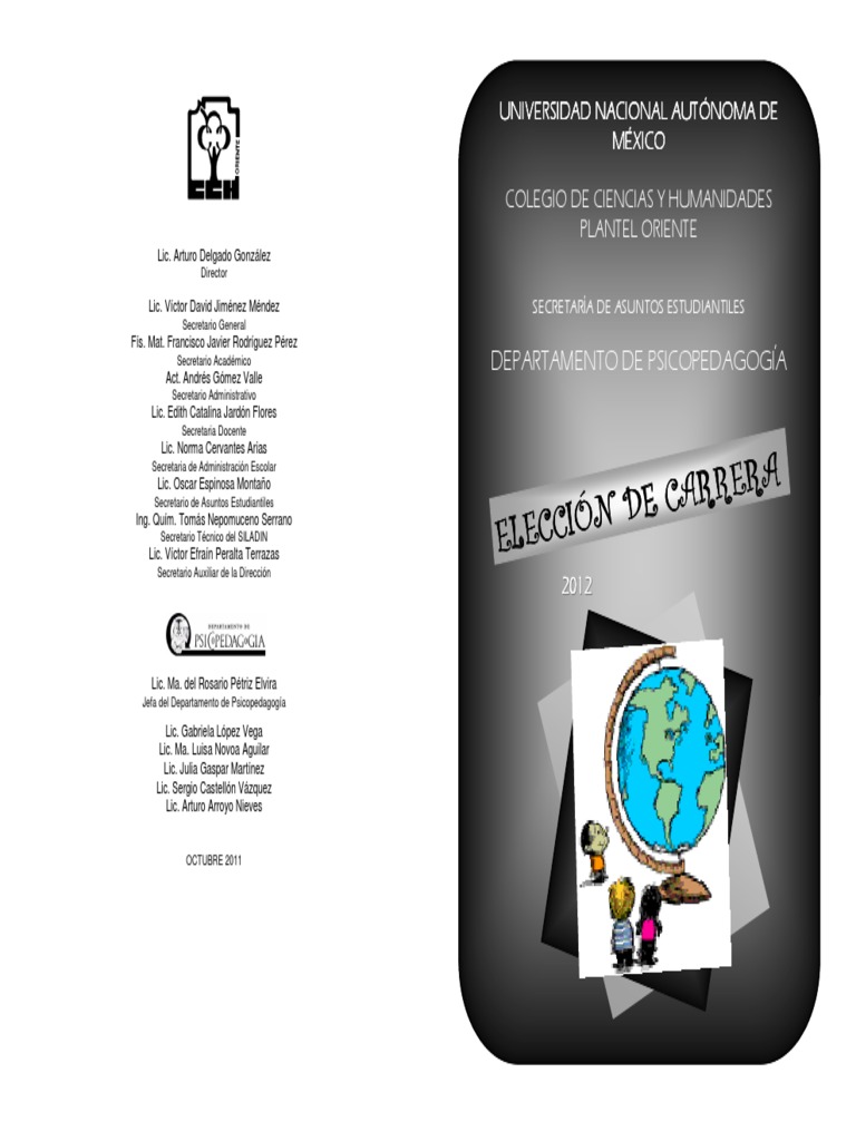 a) Para cursar Informática de la Facultad de Contaduría y Administración. Ciencias Genómicas. Más vale preguntar y darte tu tiempo para decidir. que aún queda mucho por descubrir. continúa preguntando. e) Para ingresar a la carrera de Manejo Sustentable de la Facultad de Ciencias que se imparte en Sisal. repasa lo que aún no está muy afianzado. Claro. Química Farmacéutica Biológica o bien Química Industrial y cumplir los requisitos d ed ica r los pró adicionales del Instituto. www. deberá ingresar a una de las carreras del área Físico-Matemáticas y las Ingenierías o bien a la carrera de Biología y cumplir los requisitos adicionales en el centro de investigaciones.mx te vas a d) Para cursar Ciencias Ambientales en el Centro de Investigaciones en Ecosistemas.lcg. Elaboró: Julia Gaspar Martínez 2010 Crespo. DGCCH . Química. Ciencias de la Computación. aún quedan unos meses y antes de “la recta final”. CARRERAS QUE NO TIENEN INGRESO DIRECTO Las carreras de Informática (Fac. deberá ingresar a alguna de las carreras del área Biológicas y de la Salud y cumplir los requisitos adicionales del plantel. X. Biología. s a ser gir? ¿Qué va rera ele Ingeniería en Computación. deberá ingresar a una de las carreras de las áreas Biológicas y de la Salud. Medicina Veterinaria Zootecnista. hoy sabes que elegir carrera es un proceso que requiere de tiempo y preparación. Un proyecto de Vida. Ciencias Ambientales. L. todavía es tiempo de dar lo mejor de ti en tus clases. Relájate en los exámenes.unam. informarse en www. f) Para ingresar a la carrera de Tecnología a impartirse en el Centro de Física Aplicada y Tecnología Avanzada en Juriquilla Querétaro. Yucatán. cua deberá ingresar a una de las carreras siguientes: Actuaría. Cecilia (2002) Eligiendo mi carrera. Esperamos que la información vertida en este documento te sea de utilidad y aún cuentes con tiempo para pensarlo bien y tomar la mejor decisión en esta Elección de Carrera.mx Además del análisis anterior. deberá ingresar a la carrera de Contaduría o Administración y cumplir los requisitos adicionales del plantel. confía en tu preparación. de? n do s eas gran c) Para cursar Ciencias Genómicas del Instituto de Biotecnología de Cuernavaca Morelos.unam. Investigación Biomédica Básica. te esperamos en el Departamento de Psicopedagogía o en el COE. Matemáticas Aplicadas y u é c a r Computación. Si aún existen dudas. Manejo Sustentable en Zonas Costeras y Tecnología. Soto de la Fuente. ¿ A qué e tu vida ? Morelia Michoacán. (2009) Listado de Carreras de la UNAM. en cada trabajo de investigación. Médico Cirujano. Ingeniería Química. A. deberá ingresar a la carrera de Biología de la propia Facultad y cumplir los requisitos adicionales. b) Para cursar Investigación Biomédica Básica de la Facultad de Medicina.cuaed. UNAM/ DGOSE Barrera. de Contaduría y Administración). no tienen ingreso directo. • Carreras del Sistema Universidad Abierta y Educación a Distancia. Para cursar alguna de estas carreras deberás ingresar a alguna de las opciones que se indican a continuación y cumplir los requisitos adicionales del plantel que las imparte. 5 años d Ciencias Sociales o Humanidades y las Artes y cumplir los requisitos adicionales en el Centro de Investigaciones. que elegir algo sin estar seguro de ello. Química de saste q ximos ¿Ya pen Alimentos. el plazo está llegando a su término. Matemáticas.