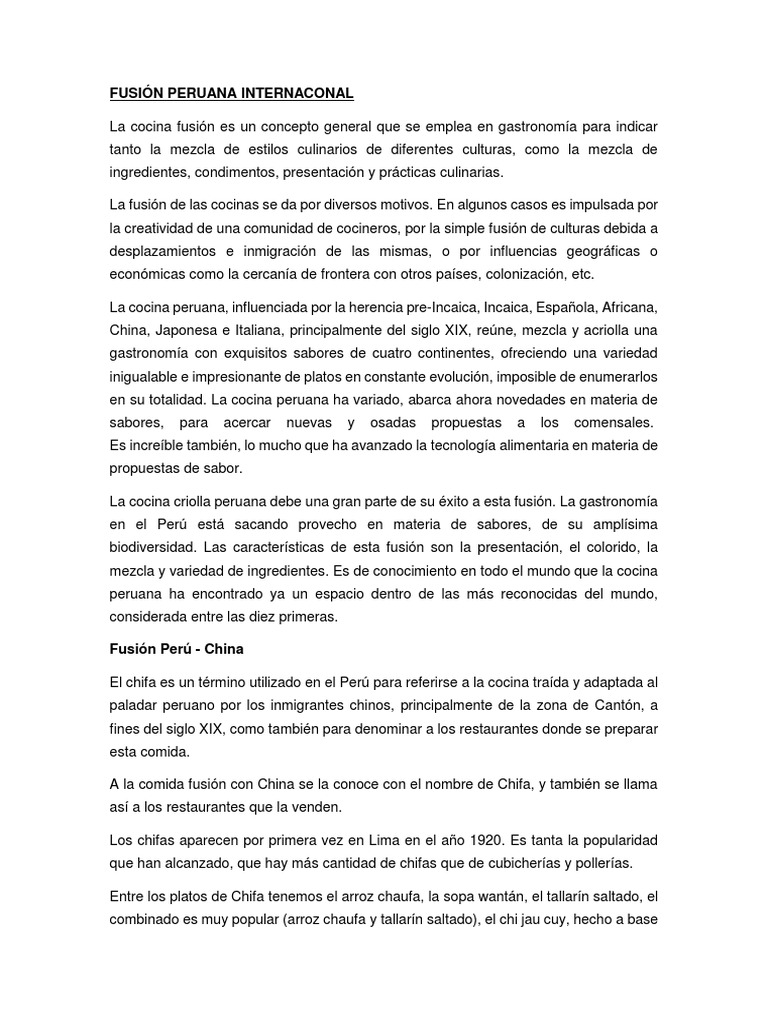 en su totalidad. La cocina peruana ha variado, abarca ahora novedades en materia de