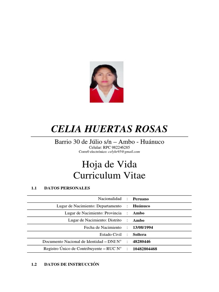 Lugar de Nacimiento: Distrito : Ambo