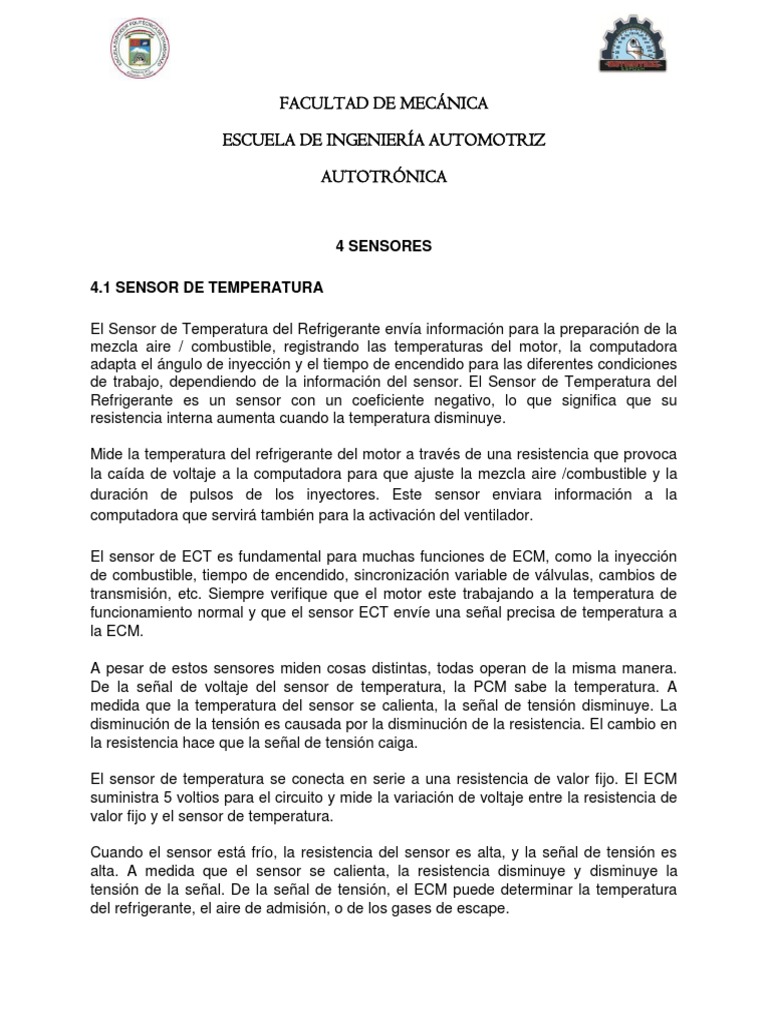 de la misma manera. De la señal de voltaje del sensor de temperatura, la PCM sabe la
