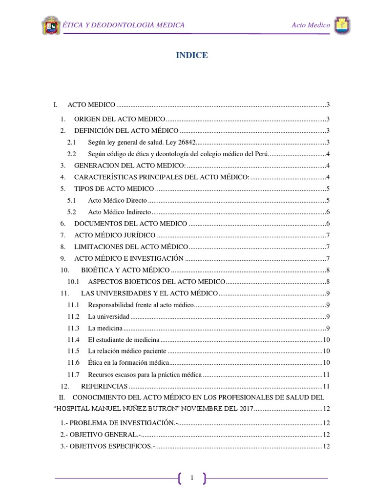 ÉTICA Y DEODONTOLOGIA MEDICA Acto Medico