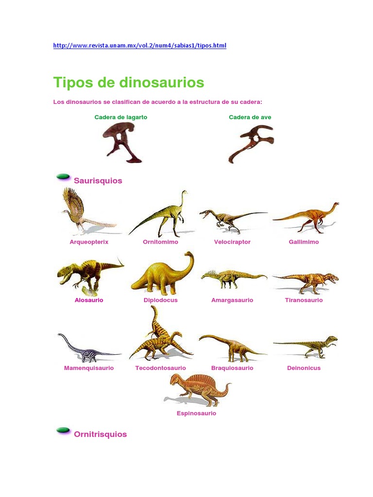 Los dinosaurios se clasifican de acuerdo a la estructura de su cadera:
