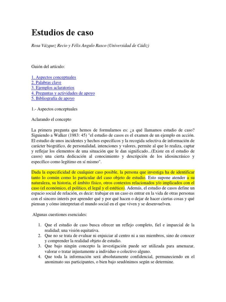 Todo estudio de caso exige el cumplimiento de unos principios éticos, como investigación